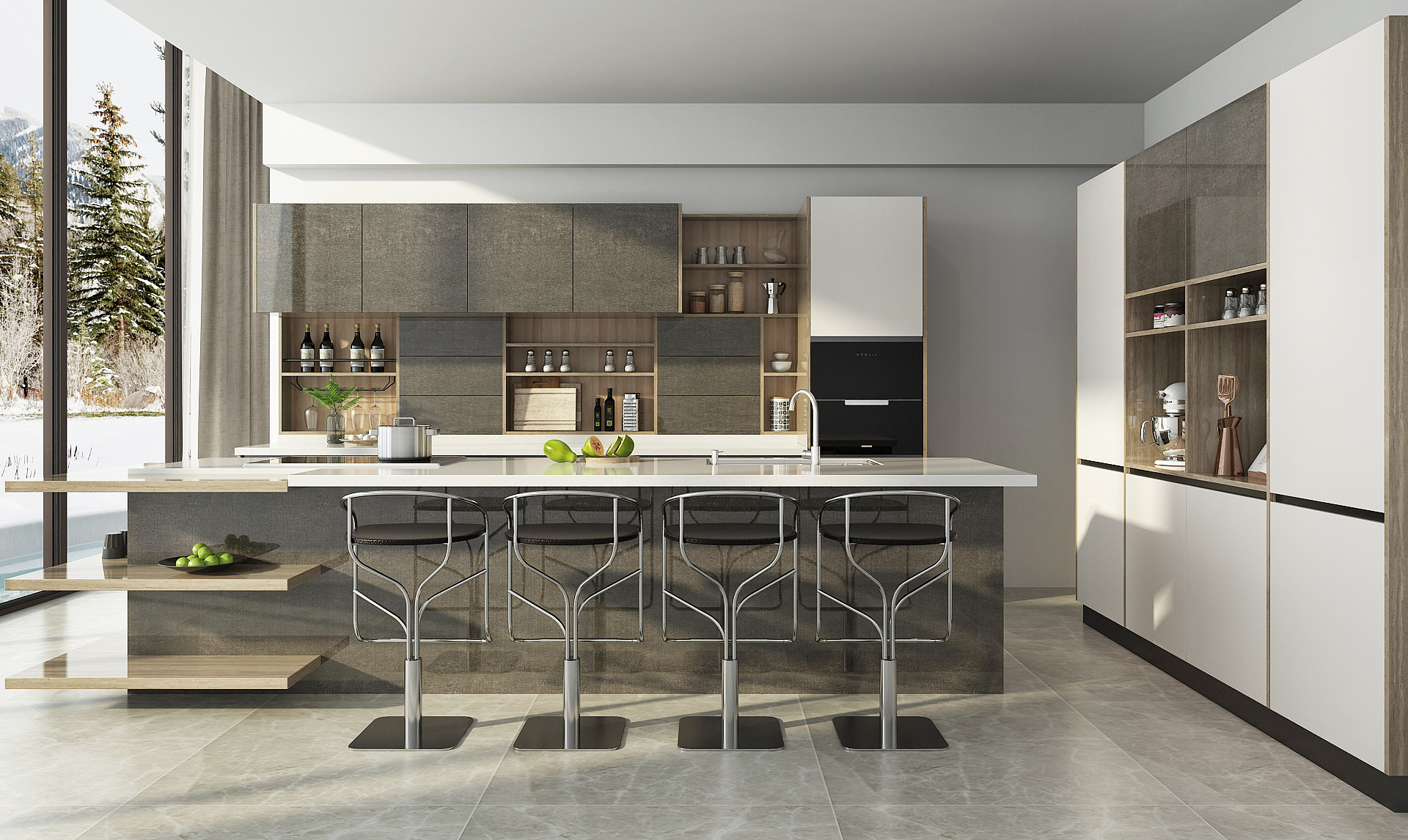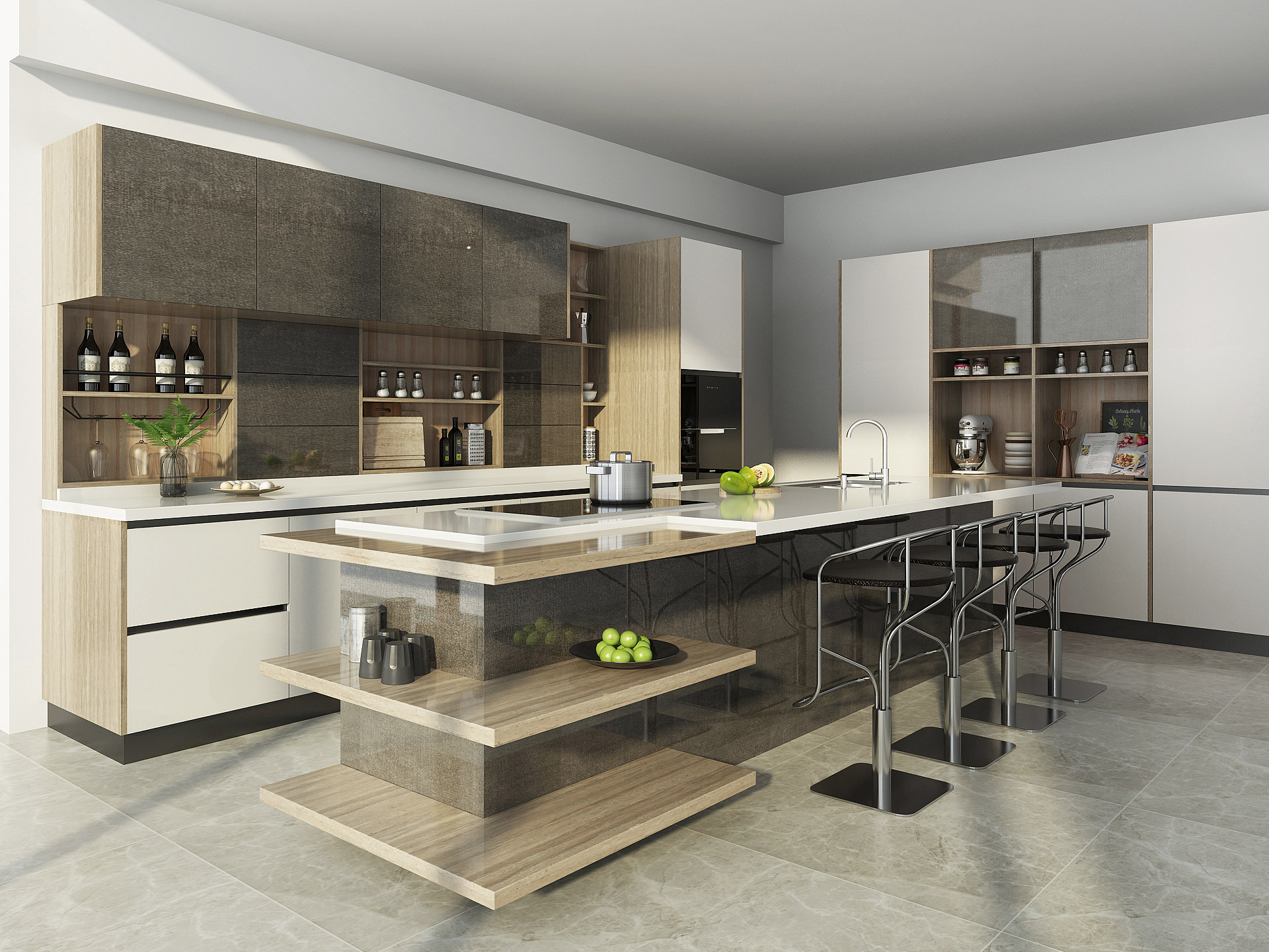 Modern Series White and Grey Kitchen Cabinet with Melamine Finish